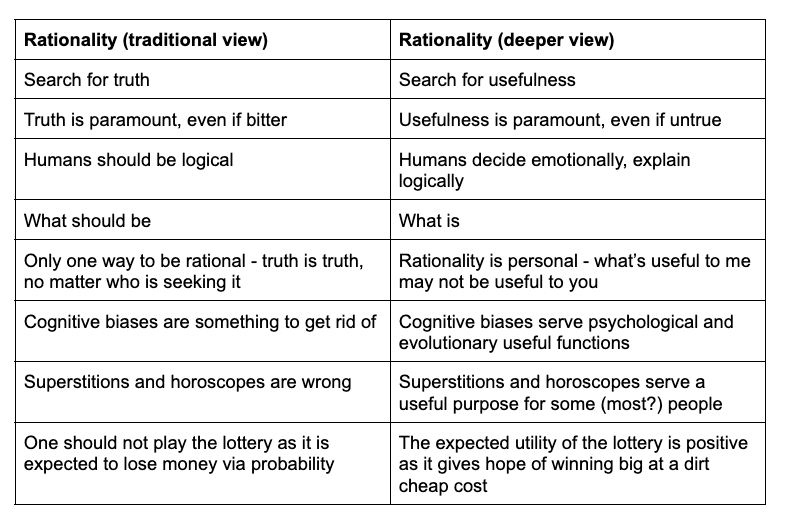 - The two views of rationality (this one): what is true v/s what is useful